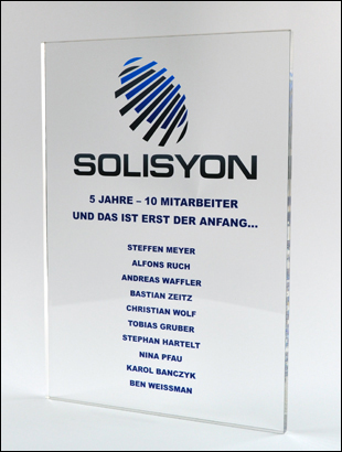 Unsere Plexiglas-Urkunden haben eine Stärke von 10 mm. Die Kanten werden zusätzlich poliert , um so einen noch edleren Eindruck zu erhalten.