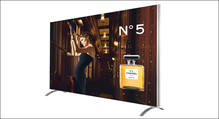 Bedruckte Textilien in edlen doppelseitigen Alurahmen |