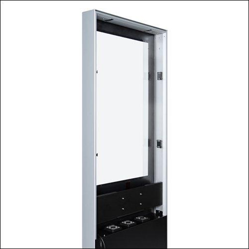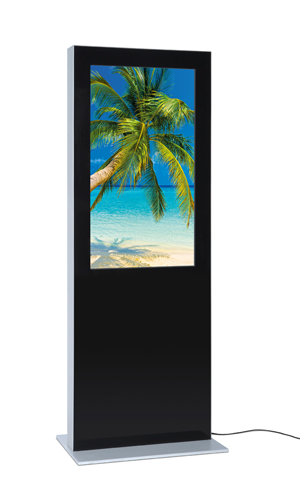 Digitaler Tower mit 43", 49" oder 55" Monitor. Hochwertige Stele im Aluminiumgehäuse für angesagte Werbung.