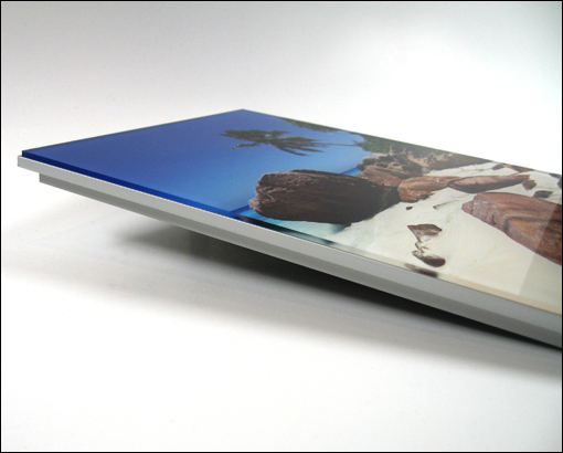 Ein schmaler Aluminium-Rahmen umschließt das Material und bildet so einen hochwertigen Abschluss Ihres Bildes.