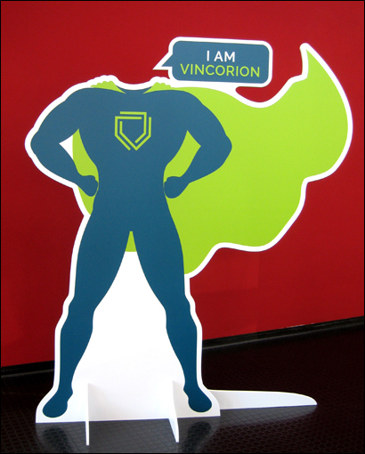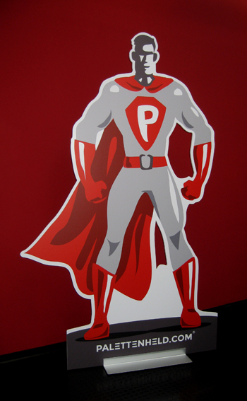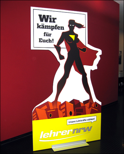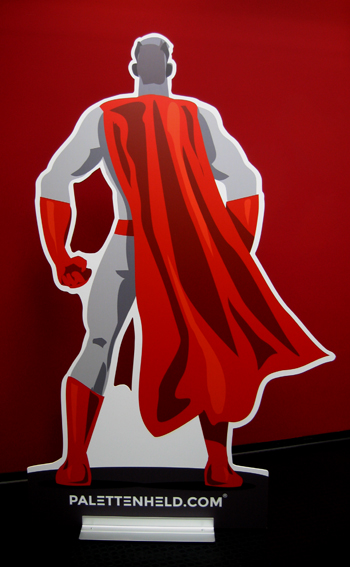 Anschließend in den passenden Aluminium-Standfuß montiert und fertig ist z.B. "Supermann" in 2,3 Meter (!) am Point of Sale.
