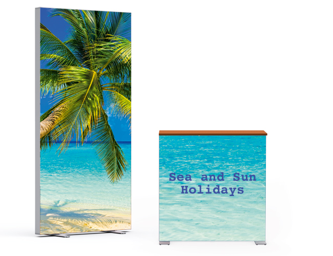 Systemmaße inkl. Füße B x H x T - 100 x 104 x 40 cm, beidseitig hinterleuchtet - Rahmenformat 100 x 100 cm.