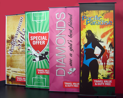 Banner einsetzen, aufstellen, fertig ist Ihre Präsentation.