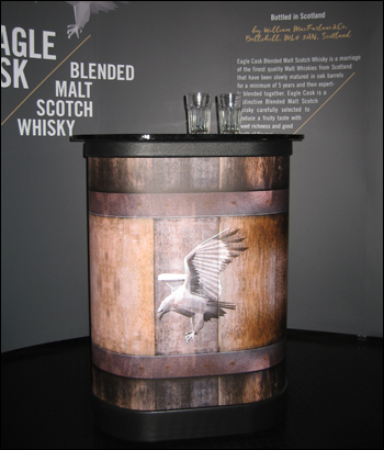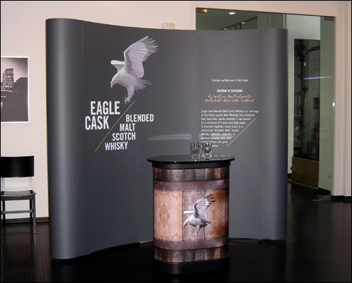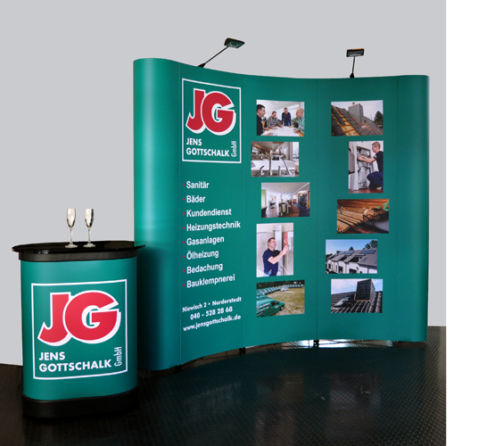 Die Theke kann dem Messestand zusätzlich grafisch angepaßt werden.