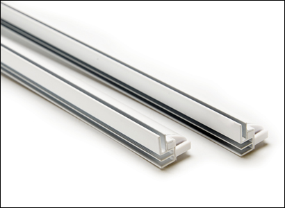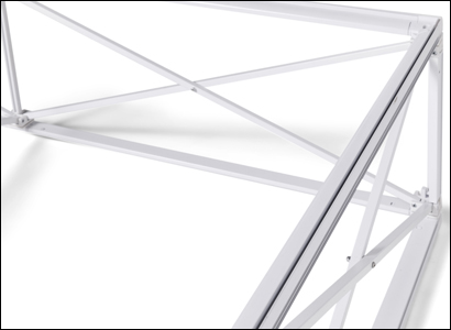 Ein weißer Aluminiumrahmen mit leicht zu befestigenden Stangen mit doppelten 14 mm tiefen Rillen, die den Silikon-Kanten-Druck halten.