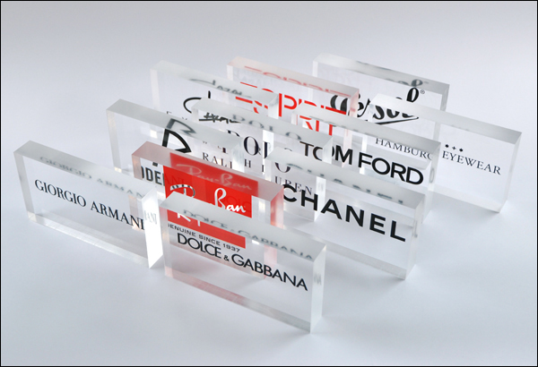 Plexiglas-Blöcke und Plexiglas-Aufsteller als außergewöhliche Dekoration oder Designobjekt.