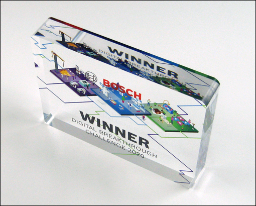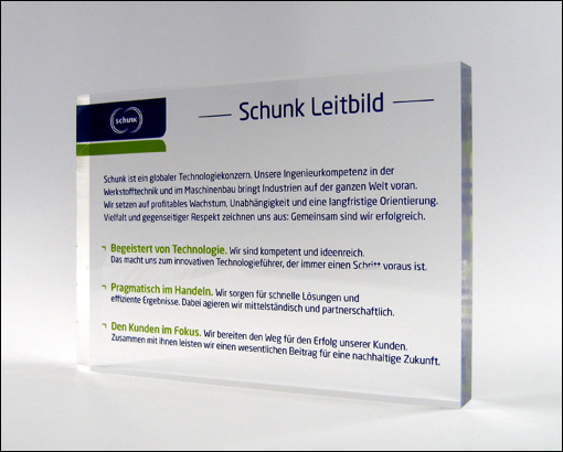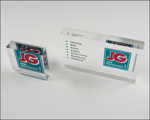 Unsere Acrylglasblöcke werden direkt von hinten oder von vorn bedruckt.