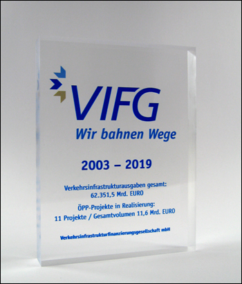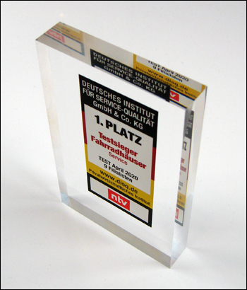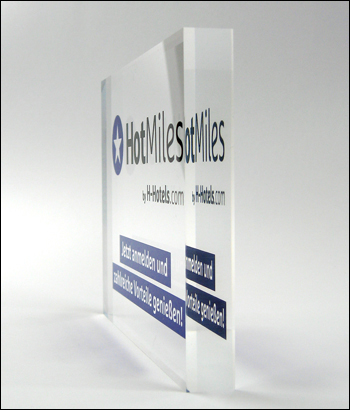 Das Acrylglas hat eine Stärke von 20 mm. Die Kanten werden zusätzlich poliert. Damt erhält der Block einen sehr edles Aussehen.