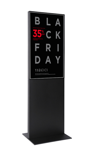 Digitaler Tower trend line mit 43" Monitor. Digitale Stele mit schlankem Design für moderne Werbepräsentationen.