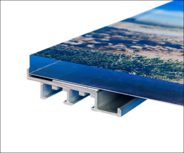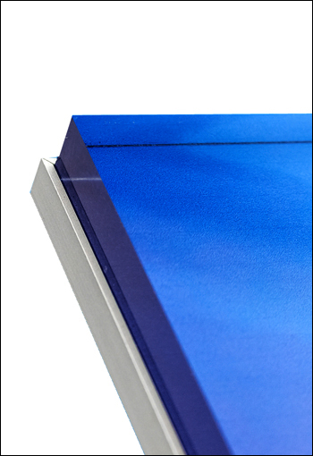 Ein schmaler Aluminium-Rahmen umschließt das Material und bildet so einen hochwertigen Abschluss Ihres Bildes.